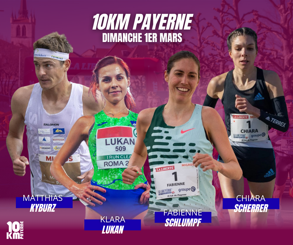 Chez les femmes, le public retrouvera Fabienne Schlumpf, finaliste olympique du 3000 m steeple à Tokyo et détentrice du record suisse du 10KM sur route, dont son ancien record a été établi à Payerne en 2017 en 32’08’’ (32’01’’ actuellement). Elle sera accompagnée de Chiara Scherrer, double finaliste européenne sur 3000 m steeple et multiple championne suisse, ainsi que de la Slovène Klara Lukan, 3e lors des Championnats d’Europe de 10km l’année dernière et détentrice du record slovène du 10km sur route en 30’26’’.